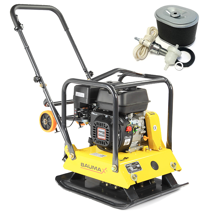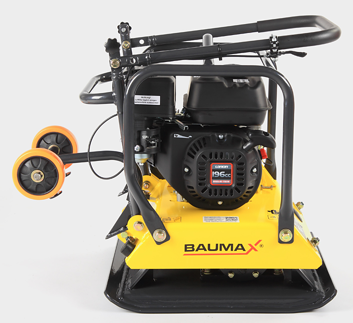 Profesionalna vibro ploča Baumax Baumaschinen Njemačka je primjerena za izradu dvorišta, nabijanje terena. Odlična kvaliteta i visoka izdržljivost. Nova serija s brzo sklopivom ručkom, podlogom za tlakavce, transportnim okvirom i velikim brzo skidajućim transportnim kotačima.